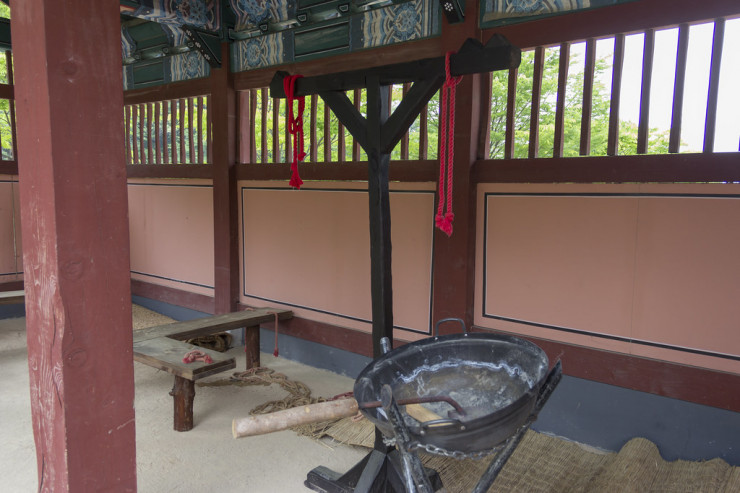 Слева от рынка находится полицейское бюро с камерами, казармой и орудиями для пыток. В этом месте Сон Нян из "Императрицы Ки" прощалась со своим отцом.