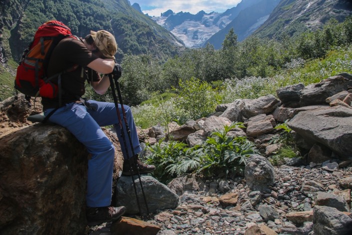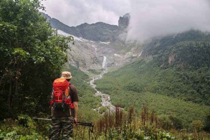 Конечная и одновременно отправная точка нашего пути, поселок Домбай, – своеобразный "базовый лагерь" для тех, кто хочет рассмотреть близлежащие ущелья. Все "классические" туристические маршруты здесь радиальные: утром ушел – вечером вернулся. Удобно, разнообразно и не нужно таскать на себе огромный рюкзак. Скажу вам откровенно: это был именно тот формат отдыха, который мы и искали. Разработали, выписали все интересные маршруты и… промахнулись.