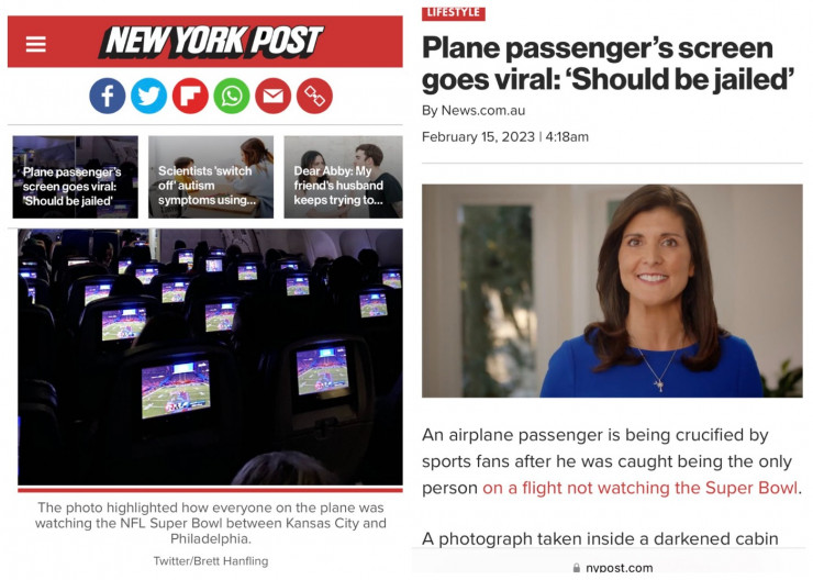 Пассажира самолета высмеяли в соцсетях из-за того, что он предпочел смотреть вместо важнейшего для американцев спортивного финала романтический фильм. Мужчина оказался единственным, кто не включил игру во время полета, передает Tengritravel.kz со ссылкой на Daily Mail.