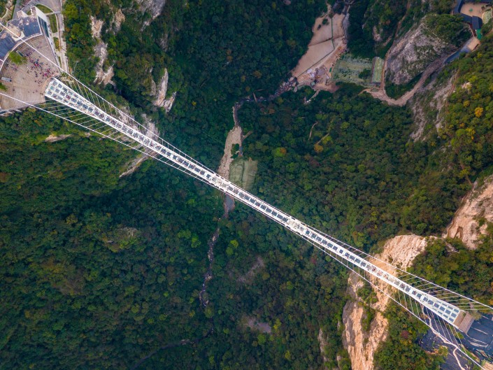 А еще один необычный стеклянный мост расположен в том же национальном парке Чжанцзяцзе, но уже у вершины горы Тяньмэнь, на высоте 1400 метров. Его еще называют стеклянной тропой или дорогой страха. Первое время в некоторые стекла были вмонтированы ЖК-экраны, которые создавали эффект трескающегося стекла. Это сильно пугало посетителей, и местной администрации даже пришлось извиняться. ЖК-экраны убрали, но и сейчас посетители не решаются наступать на прозрачную часть моста, предпочитая идти по непрозрачной.