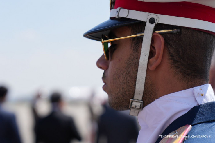 Рота почетного караула снова выстроилась перед самолетом из Казахстана.