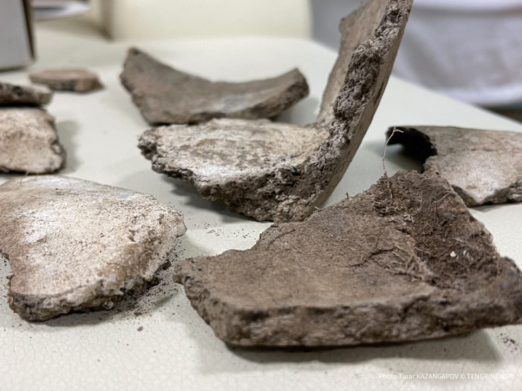 "Есть каменные отщепы орудий труда, изготовленные примерно 40 тысяч лет до нашей эры, глиняная посуда с узорами эпохи бронзы, вот топорище, к нему привязывалась специальная палка, и этим приспособлением долбили землю. Всего здесь 247 подтвержденных курганов, и если проводить дальнейшее изучение, можно найти пласты истории, свидетельствующие, как народ проживал на этой территории и в 16 веке, и в 8 веке нашей эры, и в 8 веке до нашей эры, и 5 тысяч лет назад.