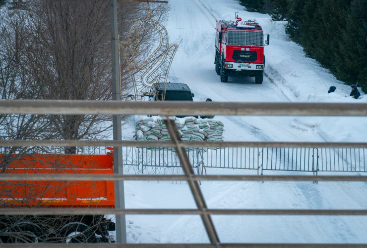 От автомобильного моста до Акорды вдоль берега реки Есиль тянется вереница колючей проволоки, за которой несут службу военные.