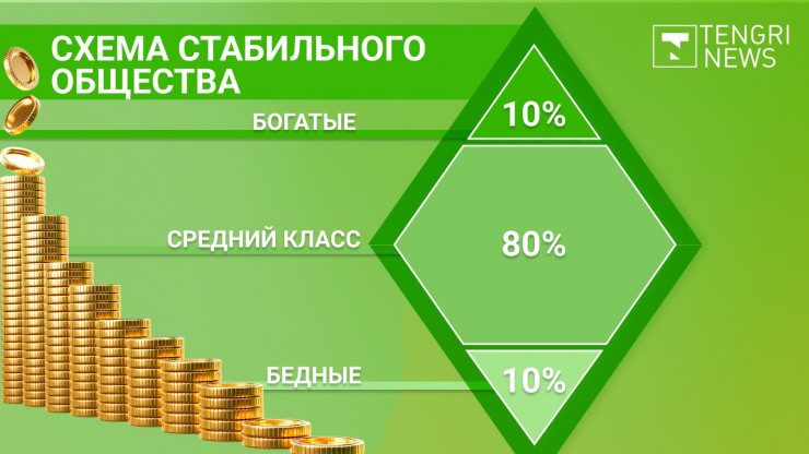 Эксперт Института мировой экономики и политики Алия Оразгалиева отмечает, что большинство классических социологических и экономических теорий делят общество на три больших класса - высший, средний и низший либо на богатых, зажиточных и бедных. Для наглядности обычно классы схематично изображаются в виде ромба или треугольника.