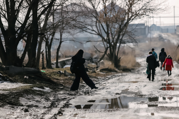 "Дети учатся в три смены. Первоклассников и второклассников мы отправляем на частных автобусах. За ребенка платим 10 тысяч тенге в месяц. Третья смена заканчивается после 7 вечера. С работы приходим, сразу идем встречать, так как переживаем за детей: темно, тут бродят собаки, много новостроек, интенсивное движение, а дороги, сами видите, какие".