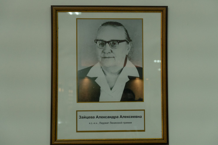 Он одним из первых здесь начал работу в сфере селекции. Во время войны он увидел, что зерно осталось в бункере без присмотра. Как это так, забеспокоился он, а вдруг оно пропадет и солдаты, которые воюют на фронте, останутся голодные. То есть он всегда мыслил масштабно. У него был длинный плащ, он лег животом на этот бункер, плащом укрылся и пролежал так всю ночь, чтобы никто не взял не дай бог, уникальный был человек", - говорит Кузнецова и рассказывает еще один факт.