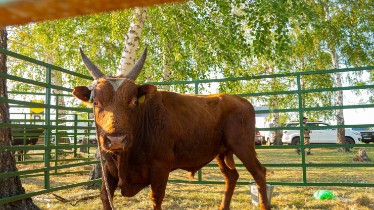 Животные также были представлены. Гости выставки смогли посмотреть на них и сфотографироваться с огромными быками. А вот фермерам предоставили возможность купить рогатых на аукционе для дальнейшего разведения у себя в регионе.