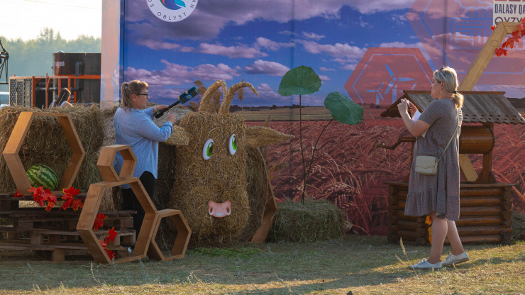 Масштабы мероприятия стали понятны еще на подъезде к поселку. Большая входная группа и ограждения из сена и огромной сельскохозяйственной техники.