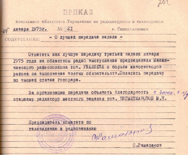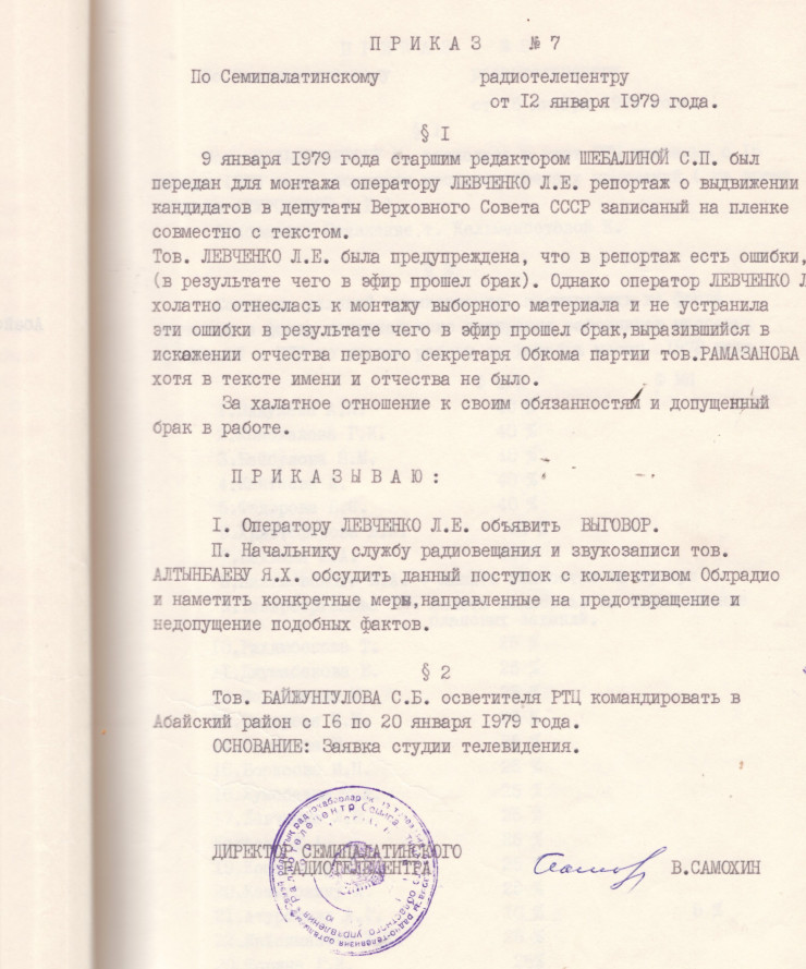 В архиве сохранились приказы, в которых можно узнать, за что сотрудники телевидения могли получить похвалу, а за что выговор.