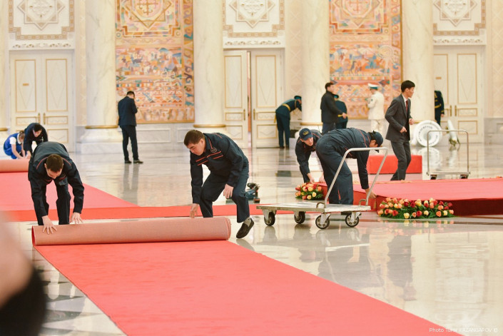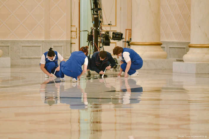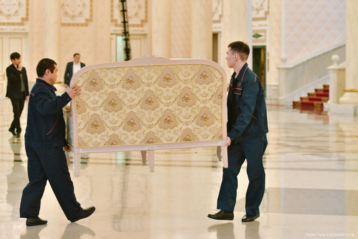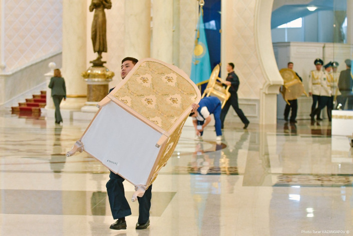 В президентском дворце Акорда сегодня меняли декорации. И со стороны это чем-то напоминало пит-стоп, то есть когда машина останавливается во время гонки, а слаженная команда быстро меняет колеса, заправляет авто и подкручивает все что нужно. Только вместо автотехников в Акорде были уборщицы, грузчики и прочие специалисты, которые работали очень и очень быстро. Что же такое происходило в центре казахстанской столицы в пятницу, выясняли Ренат Ташкинбаев и Турар Казангапов.