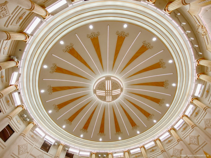 Но теперь к этой особенности добавилось еще кое-что. В зале стало в несколько раз светлей, чем было раньше. Причем свет в этой "юрте" такой яркий, что нужно какое-то время, чтобы глаза привыкли к такому освещению.