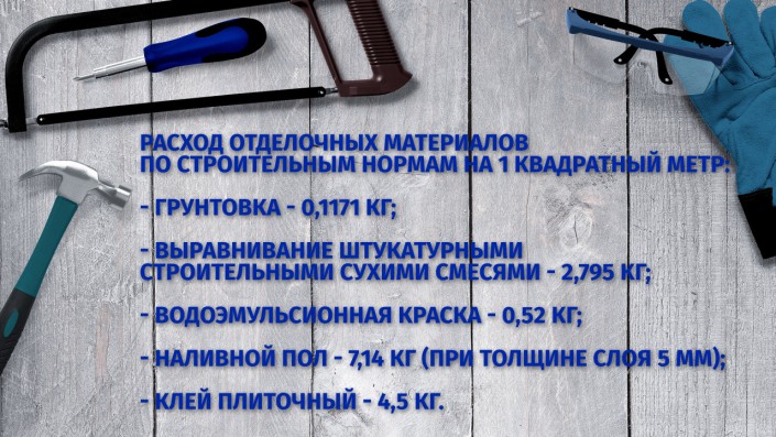 Расход отделочных материалов по строительным нормам на 1 квадратный метр:
