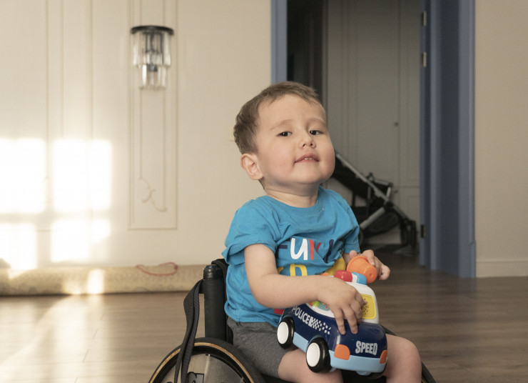 Эмир садится в свою маленькую коляску и очень шустро начинает передвигаться по комнате. Каждый раз он радует родителей новыми умениями. А это значит, что их битва за "золотой" укол была не напрасна. Они вместе с неравнодушными людьми победили. Теперь хотят, чтобы точно так же победили и другие родители "смайликов".