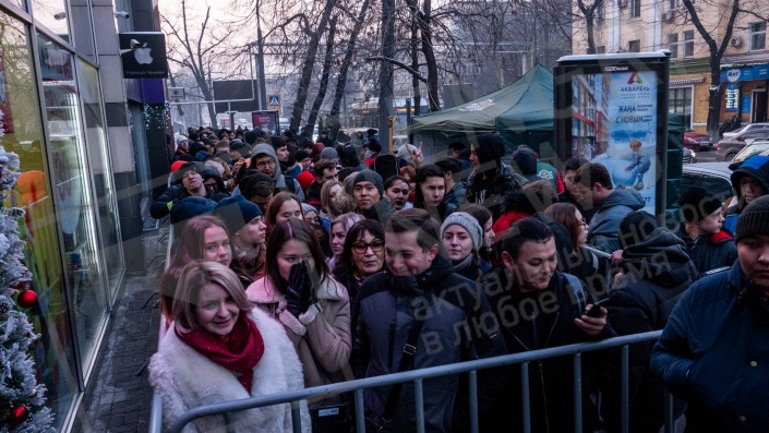 Другой помехой для работы СМИ стали персонал магазина, охрана и первая группа людей с улицы, которых сразу же впустили в зал. Они быстро перекрыли обзор фотографам, принимавшим самые затейливые позы, чтобы сделать удачный кадр.