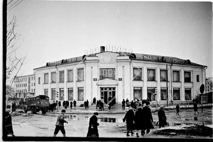 На том же месте и бывшее здание универмага на улице Сейфуллина. Сейчас это бизнес-центр.