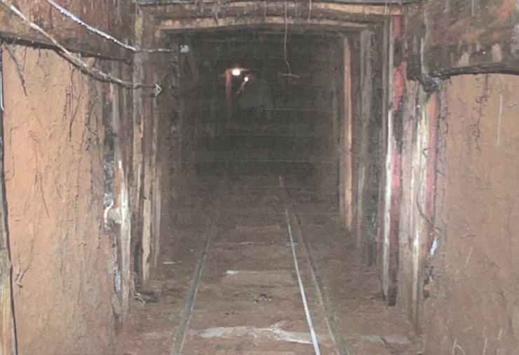 74-метровый туннель, который выкопал астанчанин в одиночку. На полу видны самодельные направляющие для тележки. Стены укреплены досками.