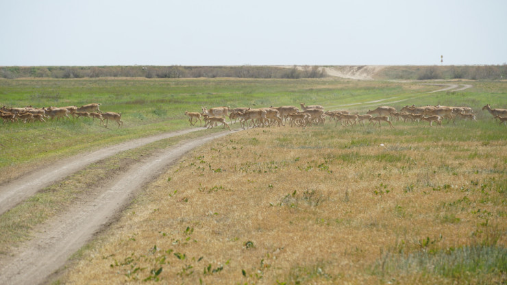 Западно-Казахстанская область. В этом месте в начале весны ежегодно проходит окот сайгаков. Эксперты в шутку называют это поле роддомом.