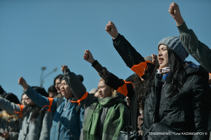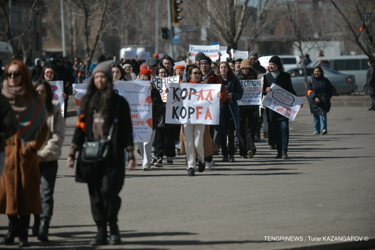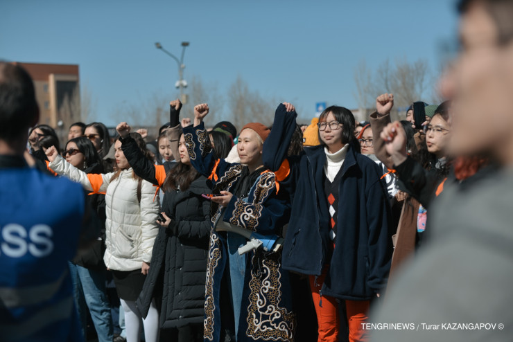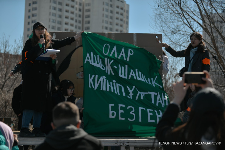 "Изначально акимат не перекрыл дорогу, и мы были вынуждены идти по узкой тропинке, постоянно упираясь в остановки, в машины. Это небезопасно и некомфортно. Марши так не проходят", - сообщила одна из организаторов шествия.