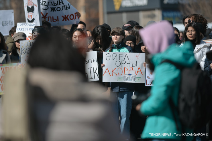 "Мы не знаем, сколько было человек, но когда мы шли колонной в марше, было гораздо больше людей, чем мы ожидали", - рассказала организатор антидискриминационной инициативы Myqty.women Нурсулу Гапурова.