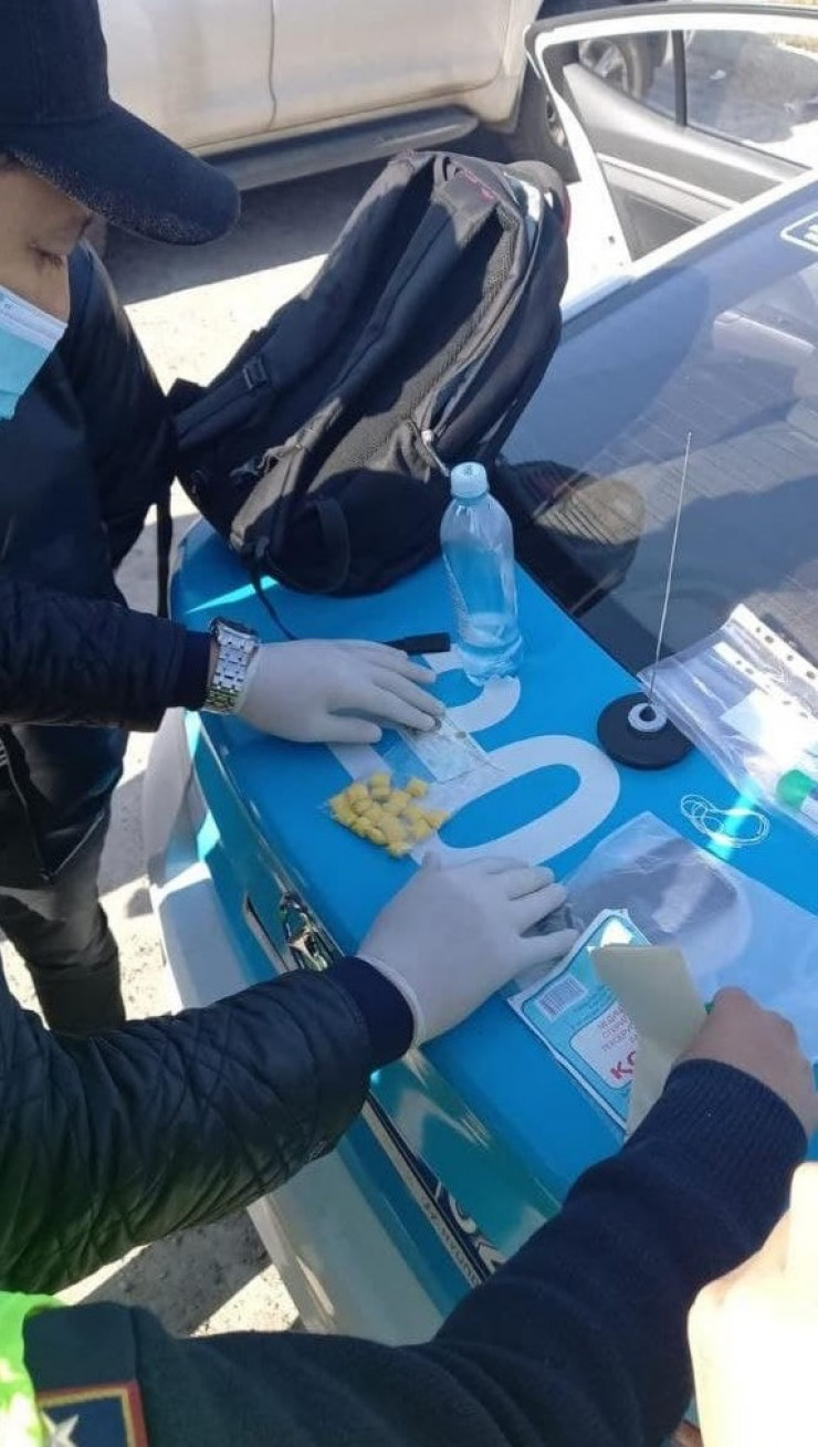 Нуржан предлагает нам съездить на задержание одного из закладчиков. Вызов поступил от жителей, проживающих на улице Горная. С поличным пойман молодой человек, ему 30, объясняет, что пошел на преступление из-за нехватки денег. С участием понятых происходит обыск, все фиксируется на камеру. Потом он показывает все точки, где оставил закладки, - всего 30 пакетиков.