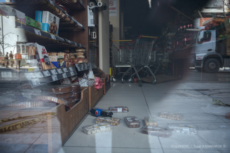 В этом магазине все в целости и сохранности. Лишь разбросанные на полу продукты напоминают о подземных толчках.