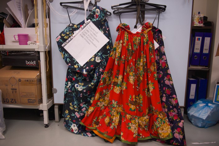 "Здесь показан очень резкий переход от лета к зиме, поэтому и темных цветов здесь достаточно. А вот в сцене на табачной фабрике женщины оголены, они показаны художником по костюмам в корсетах и рубашках, для них мы использовали пастельные тона. Все картины отличаются палитрой, здесь нет преобладающего цвета, она всегда разная", - разъяснила ассистент художника по костюмам Арасель Досмуратова.