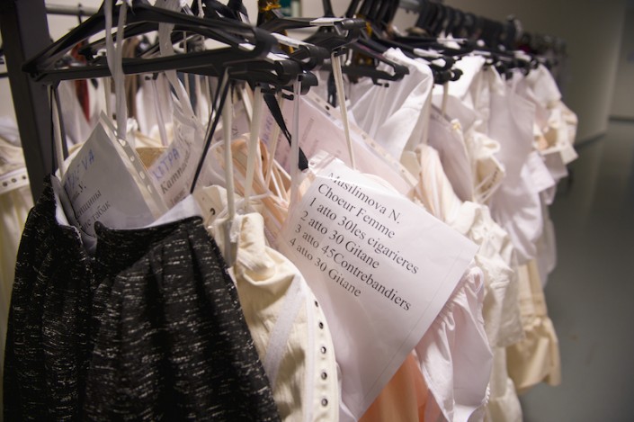 Закулисье - здесь кроется все то, что скрыто от взоров зрителей. Оно похоже на настоящий волшебный город мастеров, где делают элементы декораций, шьют костюмы, изготавливают головные уборы и обувь. Постановка спектакля "Кармен" отличается от всех предыдущих своим масштабом и реалистичностью, она перенесет зрителей в середину XIX века, в жаркую Севилью, тот самый испанский город с его уютными улочками и богатой на архитектурные строения площадью. Именно здесь Кармен вместе с другими работницами табачной фабрики будет чувственно омываться в фонтане, привлекая внимание солдат.