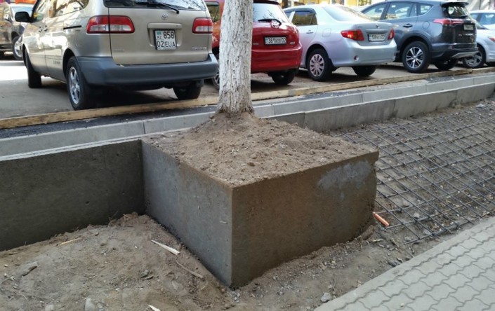 Позже акимат Алмалинского района ответил по поводу "замурованных в бетон" деревьев в центре мегаполиса. Там пояснили, что деревья вовсе не бетонировались. "Деревья не бетонировались, корневая система находится в грунте. Указанные деревья и ранее находились на уровне выше тротуара. При обустройстве тротуара и арыка были выполнены работы по укреплению подпорной стенки", - прокомментировали чиновники. Но читателей ответ акимата не удовлетворил.