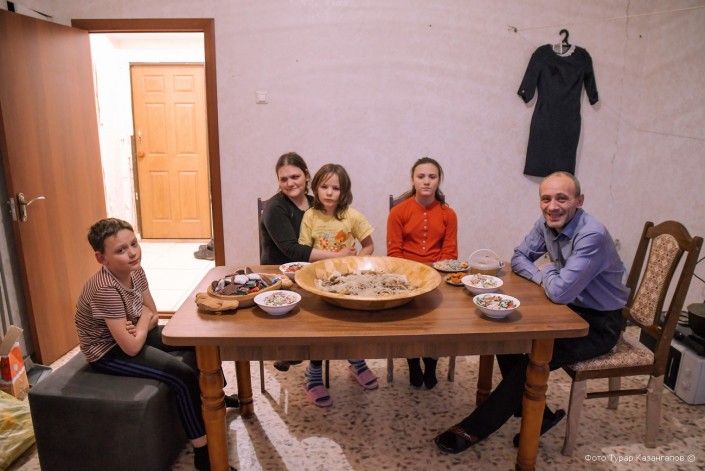 У семьи Сергея настоящий праздник. На столе горячий бешбармак. Он с благодарностью отзывается обо всех тех, кто оказывает его семье поддержку.