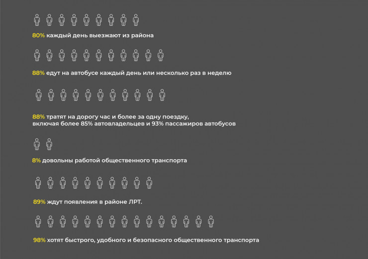 "Если мы говорим о "городе без окраин", то путь до центра города не может составлять больше 40 минут. Жители не испытывали бы таких проблем, если бы проект ЛРТ был завершен вовремя. Получается, что в подобных районах искусственно культивируется "транспортная бедность", вынуждающая их жителей тратить время и средства просто на перемещение из точки А в точку Б, просто для того, чтобы заработать денег", - резюмировал эксперт.