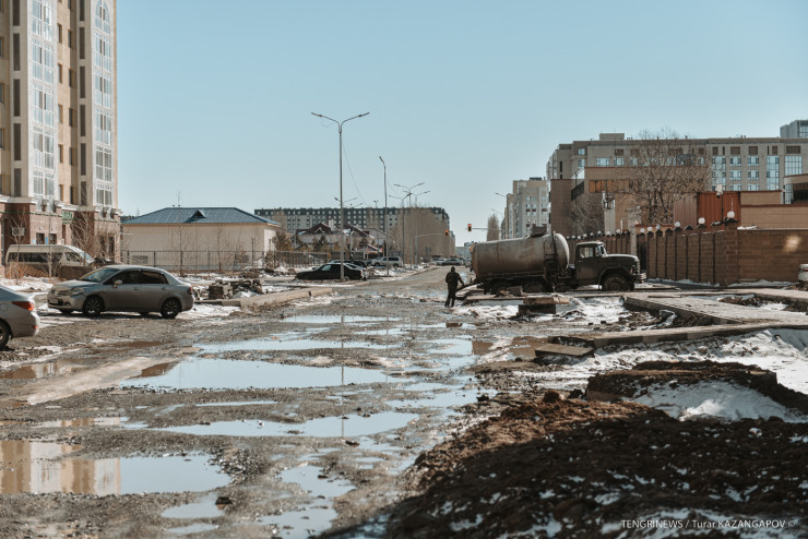 Весеннее потепление в столице вновь обнажило проблему разбитых дорог. Причем если в одних местах асфальт еще не успели проложить, то в других он "растаял" вместе со снегом. Корреспонденты Tengrinews.kz прогулялись по улицам Астаны.