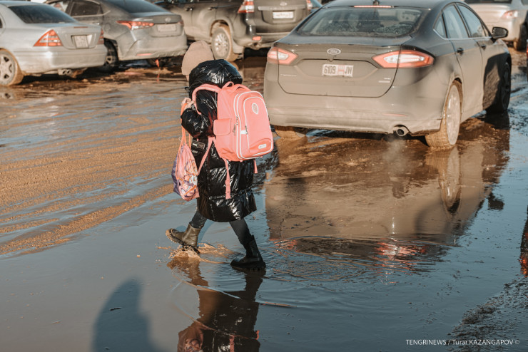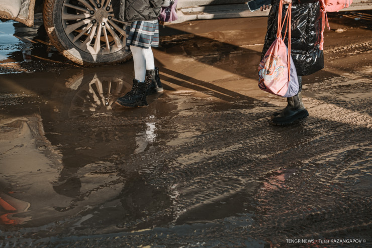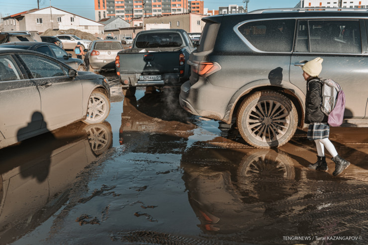 Особенно удручает состояние дорог возле школ, например, у школы Binom имени Байтурсынова, по соседству с ЖК "Самгау". Местные жители рассказывают, что вот уже второй год с приходом весны ученики вынуждены лавировать между ямами, лужами и автомобилями, под бесконечные вереницы которых этот участок улицы явно не был рассчитан.