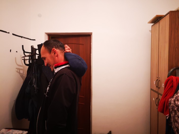 Рабочий день мужчины закончился, и он идет к себе домой - в небольшое подсобное помещение без окон. Эта комната находится в том же здании, что и автомойка.
