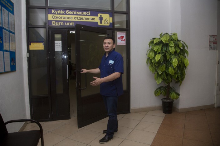 Мы встречаемся в середине июня 2019 года. Я как журналист пришла на встречу с ним, чтобы сделать для Tengrinews.kz материал о врачах: День медика отгремел пару недель назад, но я считаю, что о каждодневном героизме врачей можно и нужно вспоминать больше одного раза в год. Нуржан Омарович - уже не рядовой врач, он заведует тем самым отделением в алматинской ГКБ № 4 с 2014 года, а два года назад принял пост главного внештатного комбустиолога Алматы. По его словам, в год в приемный покой клиники с ожогами обращаются более 1500 пациентов, а через ожоговое отделение проходят 350 пациентов.