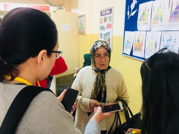 Эта пожилая жительница Стамбула рассказывает журналистам, как уже на протяжении 60 лет голосует за одну и ту же партию.