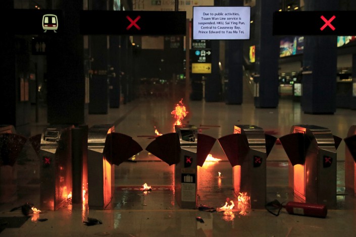 Массовые протесты, спровоцированные рассмотрением закона об экстрадиции, проходят в Гонконге с начала июня. Гонконгская оппозиция ранее планировала провести 1 октября крупный марш протеста, но заявку на его проведение отклонили. Это не остановило протестующих, которые вышли на улицы и вступили в столкновения с полицией. Демонстранты собрались в разных районах города, они ломают светофоры и дорожные ограждения и выкрикивают лозунги.