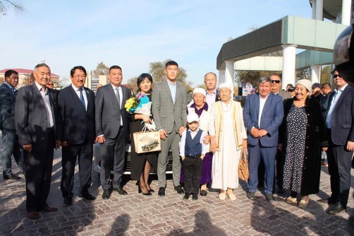 Новый чемпион мира из Мангистауской области получил в подарок Toyota Camry XV70 белого цвета. Спортсмена поздравил аким Жанаозена Максат Ибагаров.