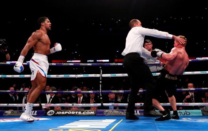 В концовке первого раунда Поветкин сумел потрясти Джошуа, а во втором у британца пошла кровь носом. Затем чемпион смог приноровиться к сопернику и в начале четвертой трехминутки своим ударом нанес рассечение у левого глаза.