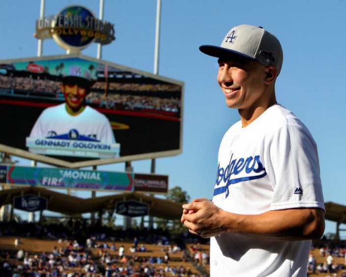 Казахстанский боксер Геннадий Головкин, являющийся чемпионом мира по версиям WBA (Super), IBO, IBF и WBC (Interim) в среднем весе, произвел торжественное первое вбрасывание на бейсбольном матче, сообщают Vesti.kz.