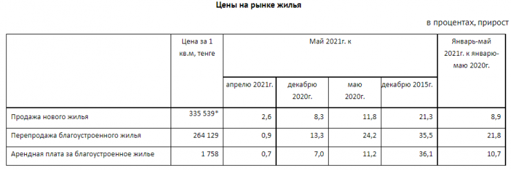 В Казахстане в мае повысились цены на новое и благоустроенное жилье. Об этом говорится в сообщении Бюро национальной статистики, передает корреспондент Tengrinews.kz.