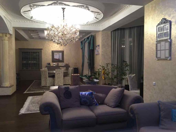 "650 кв.м, уютный европейский дом 2010 года постройки. В огороженном коттеджном городке. Недавно завершенный новый евроремонт: мрамор, оникс, дорогие столярные изделия, паркет дуб античный (Финляндия), двери - массив ольхи, венецианский, сантехника Villeroy & Boch, люстры итальянского Moroso и Swarovski, теплые полы, вся мебель от итальянских и французских производителей, бытовая техника европейских производителей. Первый этаж: прихожая, гостевая спальня, гостевая ванная комната, кухня с гостиной-столовой и выходом на террасу, холл, витражи. Второй этаж: спальня с ванной комнатой и гардеробной, гостевая спальня с ванной и гардеробной, кабинет, детская, общая ванная комната. Третий этаж: большая игровая комната, сезонный гардероб, кладовая. Цоколь: кинозал с караоке, кухня, спортзал, спальня для персонала, санузел, котельная. Участок ровный, шикарный вид на горы и город, хорошие соседи. Автоматические ворота, камеры в доме и территории с удаленным доступом, жалюзи, сигнализация. Европейский текстиль. Городские коммуникации: центральное водоснабжение и газ, высокоскоростной интернет, кабельное и спутниковое телевидение, цифровая телефонная сеть, стабильный источник питания трехфазный из двух линий (по желанию). Газон, цветы, хвойные насаждения, фруктовые деревья. Удобный доступ для автомобилей. Гараж на две машины. Место очень подходит для любителей активного и здорового образа жизни. Большинство комнат в доме открывается прекрасный вид на горные склоны, сады и ночного города", - говорится в первом объявлении. Стоимость недвижимости - около двух миллионов евро.