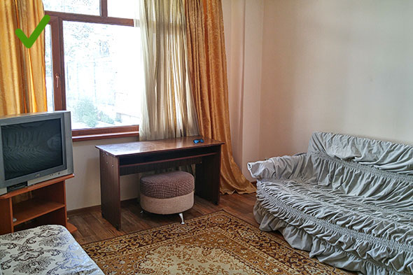 Если дома есть потрепанные ковры, но при этом хорошее напольное покрытие, ковры лучше на время убрать. То же касается других предметов интерьера неприглядного вида. В пользу вашей квартиры также не сыграют выцветшие шторы, покосившийся стол или истерзанный кошкой любимый диван. Да, это вещи, которые к продаже квартиры отношения не имеют, однако могут создать негативное впечатление при просмотре объявления.