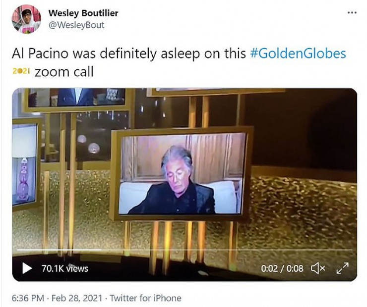 "Аль Пачино определенно спал во время 78-й ежегодной церемонии награждения", - написал один из пользователей.