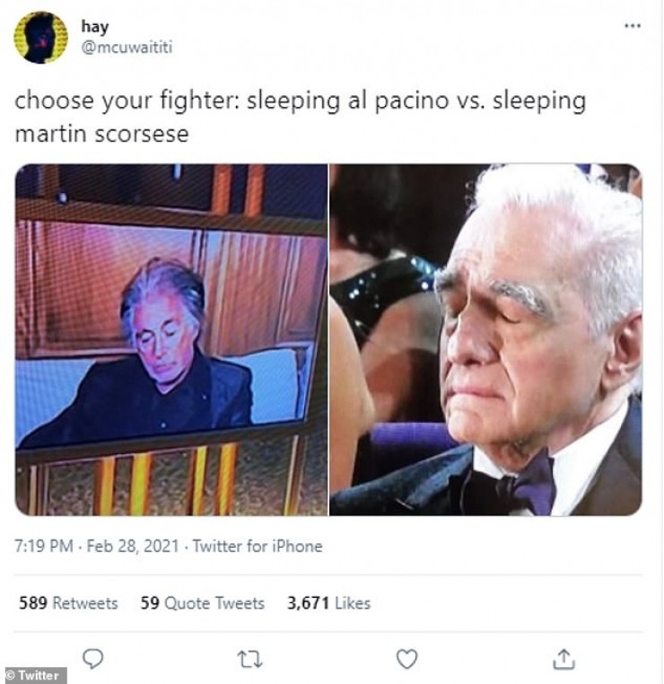 "Выберите своего бойца: спящий Аль Пачино против спящего Мартина Скорсезе", - прокомментировал один из пользователей.