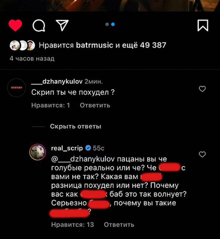 Бесцеремонный ответ кумира не понравился многим подписчикам, в комментариях началась дискуссия. Позже Скриптонит решил закрыть их вовсе.