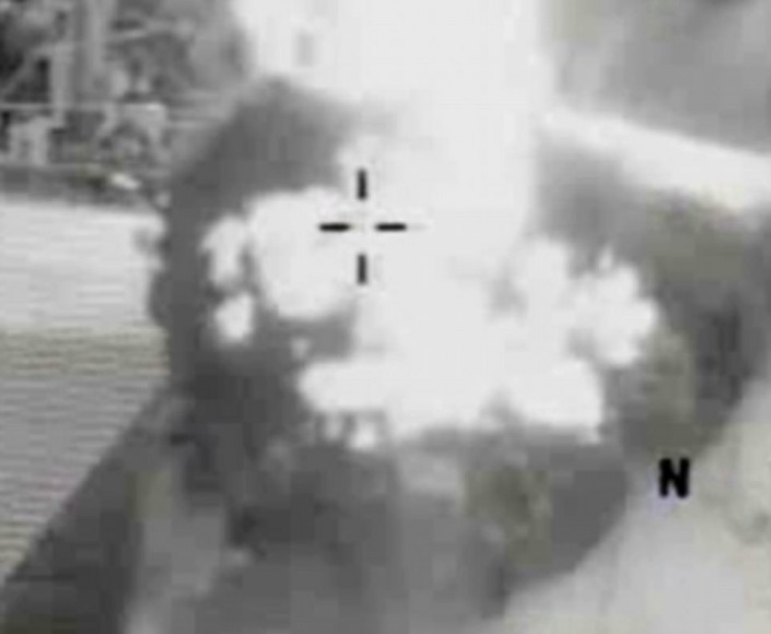 На видео запечатлен момент, когда британский дрон Reaper, управляемый с расстояния более трех километров, выпустил ракету Hellfire. В результате снаряд попал в крышу здания, убив находившегося на ней снайпера и сорвав публичную экзекуцию.