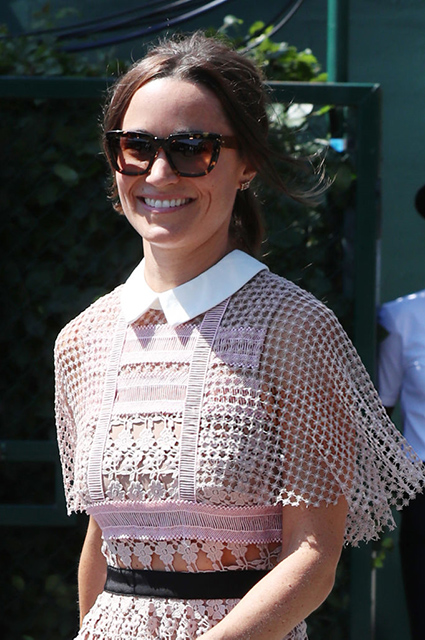 Как отмечает портал, Пиппа Миддлтон была замечена папарацци на Уимблдонском теннисном турнире. Но стройную брюнетку сопровождал вовсе не новоиспеченный супруг Джеймс Мэттьюз, а родной брат. Однако пристальное внимание общественности Пиппа привлекла не только из-за этого обстоятельства. Для выхода в свет Миддлтон выбрала прозрачное кружевное платье. Несмотря на провокационный наряд, младшая сестра Кейт осталась скромницей - белье телесного цвета прикрыло все интимные подробности фигуры.