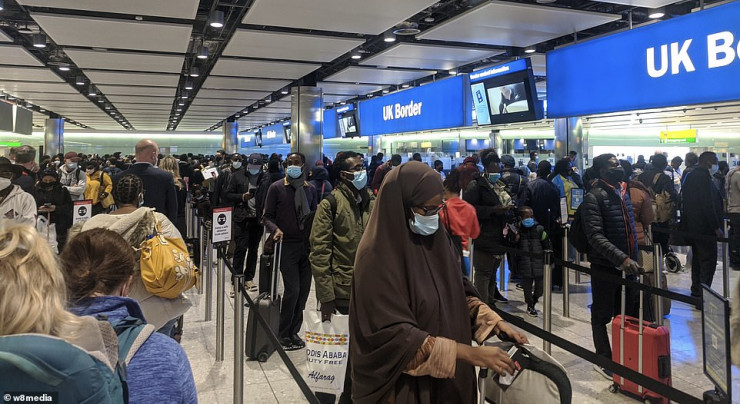 Путешественники описали хаотические сцены при прибытии в аэропорт, когда пограничники проверяли все отрицательные сертификаты тестов и формы уведомления о местонахождении пассажира, несмотря на то что все авиакомпании не разрешали никому сесть на самолет в Великобританию, не увидев их при регистрации.