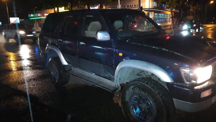 Очевидцы рассказали, что автомашина Toyota Surf ехала на разрешающий сигнал светофора. Водитель не успел среагировать и сбил пешехода на полном ходу.
