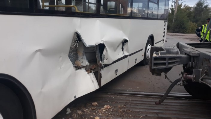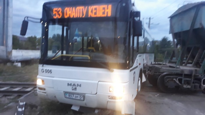 "13 сентября 36-летний водитель управляя автобусом марки "МАН" следуя по улице Жетиген со стороны улицы Досмухамедулы в сторону улицы Пушкина при подъезде к железнодорожному пути не убедился в отсутствии приближающегося тепловоза допустил столкновение с тепловозом марки "ТЭМ 18-020".